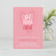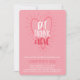 Convite de festas Dia de os namorados bonito, cor-de-rosa e branco, com EAT, DRINK & LOVE gravado dentro um coração de rabisco.