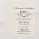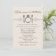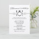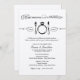 Ensaio de casamento em preto e marfim/creme e design de convite para janto de ensaio com comidas, bebidas, e ser tema de casamento em tipografia mista elegante e vintage com a função de posicionamento do anel de noivado de diamante.