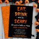 Convide seus convidados para uma celebração arrepiante com este Convite para Festas de Halloween, projetado para estabelecer o clima perfeito para uma noite de diversão e medo. A frente do cartão ostenta a frase "Coma, Beba e Seja Assustador" que chama a atenção em uma fonte estranha, misturando tons de laranja, amarelo e branco contra um fundo preto-breu. Abaixo, é fornecido um amplo espaço para incluir todos os detalhes do evento, garantindo que seus convidados saibam onde se reunir para se divertir. Sacudir a placa para revelar um padrão da teia da aranha branca sobre um fundo laranja de coordenação, adicionando uma camada extra de festivo. Perfeito para dar o tom de uma surra memorável de Halloween!