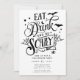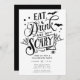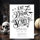 Este na moda apresenta um design de tipografia preto-e-branco com as palavras "Coma Bebida e seja Assustador. É a maneira perfeita de adicionar um toque de diversão e sofisticação do Dia das Bruxas à sua festa e deixar seus convidados saberem que eles estão dentro por um tempo assustadoramente bom. É um sucesso para todos que o recebem.