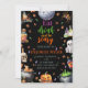 Coma Bebida E Esteja Assustada No Convite de festas De Potluck Do Halloween. Design moderno no Halloween para uma festa espetacular! Este convite apresenta uma aranha, um fantasma, um chapéu feiticeiro, uma abóbora, poções mágicas, uma lua, crânio com uma vela, e um caldeirão de poção de duas bruxas. Uma design neutra em termos de gênero, perfeita para as comemorações de outubro! Este convite de festas de sorte de halloween é perfeito para o seu próximo evento!