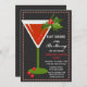 Um convite de festas de cocktail de natal festivo, com uma estrutura de padrão vermelho-quevron e fundo preto, e um cocktail vermelho divertido apunhalado com um Mistletoe - um design excelente para convidar convidados para a sua casa para "Comer, beber e ser Feliz!" nesta temporada de férias. Personalizado com seu próprio texto especial e use-o para o partido ou evento de sua escolha. Itens correspondentes, incluindo postagem, adesivo, poster, guardanapos de papel e muito mais, também estão disponíveis em nosso compro