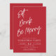 Este convite de festas de Natal, intitulado "Coma bebida e seja feliz", mostra a inscrição espiritual festiva e o fundo vermelho vibrante. O convite dá o tom perfeito para uma comemoração alegre, convidando convidados a se juntar ao prazer da temporada de festas.