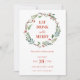 Wreath Winter Bebe Bebida e Seja Feliz Convites de festas de Natal Jante. A cor branca de fundo pode ser alterada. Farinha com bagas de inverno.