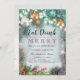 Modelos de Cartões de Convite de festas de Feliz Natal e Feliz ano novo - Terras de Neve de inverno, Árvore de Pinheiro, Ornamento de Bola de Natal e Luzes de Cordas.