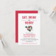 Você está planejando uma festa de Natal este ano? Faça uma declaração com nosso convite de feriado personalizável "Coma, Beba e Seja Feliz"! Apresentando um belo sorvedouro de verde de inverno e de bagas vermelhas num fundo branco limpo, este convite é perfeito para qualquer ocasião festiva. Quer você esteja hospedando um janto formal ou uma reunião informal, este convite elegante e na moda impressiona seus convidados. Com muito espaço para adicionar sua própria mensagem pessoal, você pode torná-la formal ou tão divertida quanto quiser. E com a habilidade de fazer o download instantaneamente, você pode mandá-los para fora em breve! Então, por que esperar? Peça seu convite de feriado "Coma, Beba, e Seja Feliz" hoje, e prepare-se para celebrar a temporada no estilo!