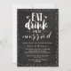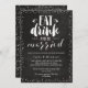 Convite para chás de Casais com o clássico "Comer", beber e ser casado, citação escrita em caracteres manuscritos em fundo de quadro.