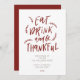 Coma, beba e fique grato com aqueles que você mais ama com este convite! O estilo divertido de escrita e cores de queda fazem disto uma escolha confortável e festiva para a sua comemoração de Amizade ou Ação de Graças!