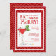 É a época para comer, beber e ser feliz, uma abertura perfeita para um convite do Cocktail Party de Natal! Com um pano de fundo vermelho com padrão de chevron e um martini vermelho divertido apunhalado em holly, uma bengala doce, e pequenas luzes de Natal, este convite é certamente para colocar o palco para uma noite de excelente com familiares e amigos.