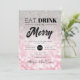 Festa de Natal / Festa de Natal / modelo de Convite de festas de inverno com design de tipografia "Comer, Beber e Ser Feliz", faux glitter & bokeh light motif em Prata. Excelente a ser usado para festas de janto Corporativo, bolas e galas de inverno, gravata negra / eventos e festas de escritório.