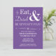 Convide amigos e família para ajudá-lo a comemorar seu 75º aniversário com este branco retrógrado roxo comendo, beba e seja setenta e cinco! convite de festas.