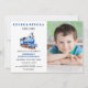 🚂 todos a bordo da aventura de aniversário com nosso Convite Fotográfico de Aniversário de Comboio Personalizável, projetado especialmente para o grande dia de um menino! Com um charmoso trem aquoso, este convite é o bilhete perfeito para iniciar uma festa de aniversário com tema de trem. Ela define a cena de uma jornada de momentos divertidos, entusiasmos e memoráveis. Prepare-se para um dia de celebrações alegres e escapadas brincalhonas nos trilhos! 🛤️ 🎈