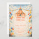 This whimsical circus-inspired design brings a joyful “come one, come all” carnival feel to a baby shower celebration. Featuring a vintage-style big top tent, colorful balloons, festive bunting, and soft cloud details, the artwork feels playful yet polished with a gentle storybook charm. The bright but balanced color palette makes it perfect for a fun, welcoming baby shower that feels cheerful without being overwhelming—ideal for hosts who want something imaginative, lighthearted, and memorable.