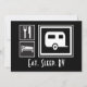 Gráficos pretos, brancos e cinzas coloridos com o estilo de conselho mostrando as necessidades da vida. Ícones pequenos para comer e dormir usando a faca de serviço e garfo de comida padrão, e imagens de teto e cama de motel. Um gráfico de trailer de camper super grande, porque é claro, é mais importante do que comer e dormir!