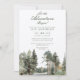 Este convite de chuveiro de bebê rústico 'que a aventura comece' com aquarela floresta do lago pode ser personalizado com suas informações em tipografia moderna e uma foto especial, juntamente com os detalhes do código QR do seu registro no verso. Projetado por Thisisnotme©