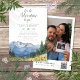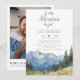 Este convite de chá de bebê moderno e elegante, comece a aventura, montanha aquarela e flor silvestre pode ser personalizado com suas informações em tipografia moderna e uma foto especial no verso, juntamente com um código QR do registro. Projetado por Thisisnotme©