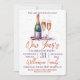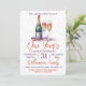 Um Convite de festas de Casa de Celebração de Ano Novo. Design de uma garrafa de víscera, vinho espumante e 2 copos de flauta. Um design de celebração encantador com laranja queimado e texto roxo convidando seus convidados para uma festa de casa festiva. Fácil de personalizar com os detalhes do seu próprio partido.