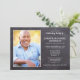 Funeral Rustic Chalkboard/Celebração Do Convite À Vida. Estes convites para festas de simpatia apresentam uma foto no quadro de chalkboard em uma cinza e design branca. Personalize esta celebração do convite para o funeral de vida com as fotos, nomes e datas de seus entes queridos, detalhes do evento. COPYRIGHT © 2021 Judy Burrows, Black Dog Art - Todos Os Direitos Reservados. Celebração Rústica Do Convite Memorial Fotográfico À Vida