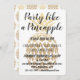 Convite de Aniversário de 50 Anos de Casamento Destino Tropical Festa Como um Abacaxi. Este é um convite perfeito para Aniversário de Cinquenta Anos de Casamento para uma festa tropical. O abacaxi é em folha de ouro falso e fundo branco com texto manuscrito sobreposto. O texto pode ser personalizado com suas informações.