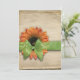 A imagem olha como um girassol alaranjado gigante do jardim amarrado com um arco verde no papel de pergaminho enrugado envelhecido da antiguidade do vintage. Este é uma imagem lisa, e não uma flor e um arco reais. Mostrado aqui para um convite do comensal da acção de graças, este seria um convite perfeito para todo o evento especial temático do outono ou da natureza. Ocasional e simples contudo à moda e original. Personalize-o com seus detalhes pessoais na parte traseira. Botanicals simples e elegantes para a queda das expressões de papel.