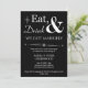 Convide amigos e familiares para ajudá-lo a celebrar seu casamento recente com este convite de festa informal Eat, Drink & Be Married! retrô branco no preto divertido.