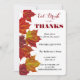 Coma, Beba e Dê Obrigados. Convite com lindas folhas coloridas de outono para convidar todos os seus amigos e família para uma festa de Ação de Graças de excelente. Você pode personalizar a tipografia para alterar seu nome, datas, endereço e outras informações. É uma maneira perfeita de começar a reunião da família e amigos de Ação de Graças. design de excelente de de Designs TLS.