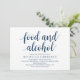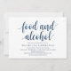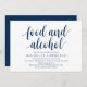 Cartão de Chá de panela para Caligrafia Moderna (Comida e Álcool). Convide os convidados com este Cartão de Convite perfeito. Adicione os detalhes do seu chá de panela ao texto Marinho azul correspondente.
