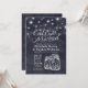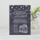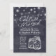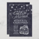 Comece a beber e a casar-se com Celebração de Casamento / Cartões Chás de panela.- Elegante Mason Jar e String Lights no Marinho Blue Floral Linen Background. Um Design perfeito para o seu grande dia. Todo estilo de texto, cores, tamanhos podem ser modificados para ajustado das suas necessidades!