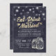 Comece a beber e a casar-se com Celebração de Casamento / Cartões Chás de panela.- Elegante Mason Jar e String Lights no Marinho Blue Floral Linen Background. Um Design perfeito para o seu grande dia. Todo estilo de texto, cores, tamanhos podem ser modificados para ajustado das suas necessidades!