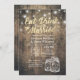 Comece a beber e a casar-se com Celebração de Casamento / Modelos de Cartões de Chá de panela.- Elegante Mason Jar e as Luzes de Cordas no Fundo Russo de Madeira. Um Design perfeito para o seu grande dia. Todo estilo de texto, cores, tamanhos podem ser modificados para ajustado das suas necessidades!