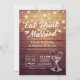 Comece a beber e a casar-se com Modelos de Cartões de Celebração de Casamento - Letras Elegantes, Óculos de Champanhe Vintage e Luzes de Cordas no Fundo Russo da Madeira. Um Design Perfeito Para O Seu Grande Dia! Todo Estilo De Texto, Cores, Tamanhos Podem Ser Modificados Para Ajustado Das Suas Necessidades.