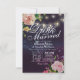 Comece a beber e a casar-se com Celebração de Casamentos / Modelos de Cartões Chás de panela - Faux Gold Foil Script, Elegante Watercolor Floral Peach White Roses e String Lights no Fundo das Luzes Purple Sparkle Bokeh. Um Design Perfeito Para O Seu Grande Dia! Todo Estilo De Texto, Cores, Tamanhos Podem Ser Modificados Para Ajustado Das Suas Necessidades.