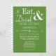 Vai ser um belo casamento divertido, por isso, organize o palco com este convite de casamento, Beber e Casar!, verde e branco. Isto é perfeito para um quintal casual ou um microcasamento.