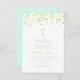 Communion Mint e Dourado Confetti Esta design festiva e moderna é perfeita para a Primeira Comunhão do seu filho. O fundo consiste num fundo branco, acentuado com a menta e o confete dourado e uma cruz dourada ornamentado. Esta coleção é simplesmente bonita. Veja os acessórios, presentes, favoritos para festas e artigos de papelaria correspondentes.