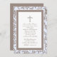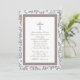 Chamada de comuna azul-bebê e marrom-1-rua com cruz decorativa e estrutura paisley. Personalizar para batismo, comunhão ou qualquer evento religioso especial.