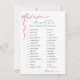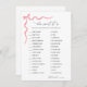 Que doce é a placa de atividade Jogos de Chá de fraldas de doce que apresenta um design com um arco rosa. Uma maneira divertida de interagir com convidados de chá. RESPOSTAS: BABY LAUGH - F. Snickers BABY POOP - I. RAISINET BOY NAMES- H. MIKE & IKE BREASTEEDING- M. MILKY WAY COLLEGE FUND- G. 100 GRAND CONCEPTION-N. CONTRAÇÕES DE PELE- J. WHOPPERS NOME DE PAI - D. PAI DE AÇÚCAR EPIDURAL - C. LIFESAVER GIRL - E. BABY RUTH HOSPITAL BILL - A. NIGH-O SEM SONO DE PAGAMENTO. ROCKY ROAD TRIPLETS- L. 3 MUSKETEERS TWINS - B. TWIX CORD- K. TWIZZLERS