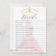 Diversão e na moda, você conhece bem o cartão de jogo da noiva chá? Jogo divertido para jogar na sua festa de chá de panela. Vestido cor-de-rosa pincelado elegante com cabide dourado exibido no fundo. Arte original e design por Paparia de Moodthologia.