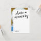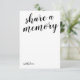 Cartão personalizado para compartilhar uma memória com uma fonte de caligrafia na frente e uma foto de seu ente querido no verso. Peça aos seus convidados do funeral para compartilharem sua memória favorita de seu ente querido com esses cartões memoriais especiais.
