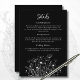 Esta placa de gabinete em preto-e-branco fornece todos os detalhes para seus convidados. O guião branco e as flores brancas criam um tema elegante para o dia do seu casamento. Todas as informações podem ser personalizadas e um código QR no verso está disponível para dar aos seus convidados a capacidade de ver mais informações no seu site