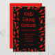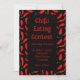 Legal convite para o Concurso de Comida Chili. Pimentos de pimenta vermelho-claro, com um padrão preto, com uma seção editável para introduzir seus próprios detalhes. Personalize este convite divertido para usar em eventos de consumo de chili, eventos de cozinhar apimentada ou em convites de aniversário com um tema quente e apimentado.