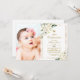 Flores Brancas e Moldura Dourada. Convite de comunhão de bebê impresso personalizado e acessível. Este lindo desenho tem flores brancas em aquarela com moldura dourada. Personalize o design com os detalhes da festa de comunhão do seu filho. O verso tem uma cruz dourada com flores de aquarela ou use o espaço para adicionar texto e fotos adicionais. Clique em Personalizar para escolher qualquer cor de fundo e editar as fontes e cores do texto para criar um convite de comunhão exclusivo e único para sua filha