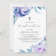 Convide seus familiares e amigos com este convite de comunhão floral violeta. Ele apresenta ilustrações aquarelas de flores de pénia com padrão floral correspondente. Personalize adicionando seus próprios detalhes. Este convite de peônia roxa é perfeito para confirmações de outono e inverno.