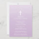 Lindo convite da Primeira Comunhão apresentando um rico e delicado pátria com uma cruz branca pendurada colocada sobre um fundo chic e popular lavanda pálida pálida púrpura de fundo. Sacudir o convite para encontrar um ombre de volta para um toque especial extra. Disponível em nosso compro em uma variedade de cores para uma garota ou um garoto.