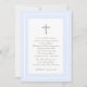 Convite azul de bebê macio com cruz decorativa. Personalizar para batismo, comunhão ou qualquer evento religioso especial.