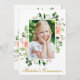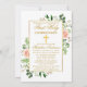 Cartão de Convite Fotográfico Dourado para Rosas Rosa Cor de Água da Primeira Comunhão Elegante Moderna Cor de Água Rosa Floral e Botânica