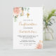 Um fundo branco decorado com um verde de eucalipto, ouro rosa e rosas cor-de-rosa pinceladas, folhas douradas. Personalize com um nome e detalhes da cerimônia. Letras pretas e douradas. Verso: fundo rosa dourado.