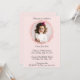 A Primeira Comunhão Sagrada é simplesmente bonita para o dia especial de sua menina para enviar a todos seus amigos e família anunciando a sua primeira comunhão sagrada. Apresentando uma foto na frente de um fundo cor-de-rosa, coroa floral rosa, junto com todas as informações para seu dia especial.