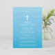 Lindo convite da Primeira Comunhão apresentando um rico de terra delicada com uma cruz branca pendurada sobre um chic e popular fundo azul de ombre para um garoto. Sacudir o convite para encontrar um ombre de volta para um toque especial extra. Disponível em nosso compro em uma variedade de cores para uma garota ou um garoto.