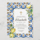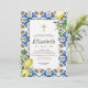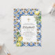 Composto por tipografia serif e escrita cursiva. Tudo num pano de fundo de azulejos espanhóis mediterrânicos azuis e brancos com folhas de folhagem verde, limões e botânicos florais selvagens. Este foi projetado por materiais de terceiros selecionados, exclusivos para o Zazzle. Disponível aqui: http://www.zazzle.com/store/selectpartysupplies