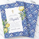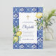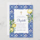 Composto por tipografia serif e escrita cursiva. Tudo num pano de fundo de azulejos espanhóis mediterrânicos azuis e brancos com folhas de folhagem verde, limões e botânicos florais selvagens. Este foi projetado por materiais de terceiros selecionados, exclusivos para o Zazzle. Disponível aqui: http://www.zazzle.com/store/selectpartysupplies